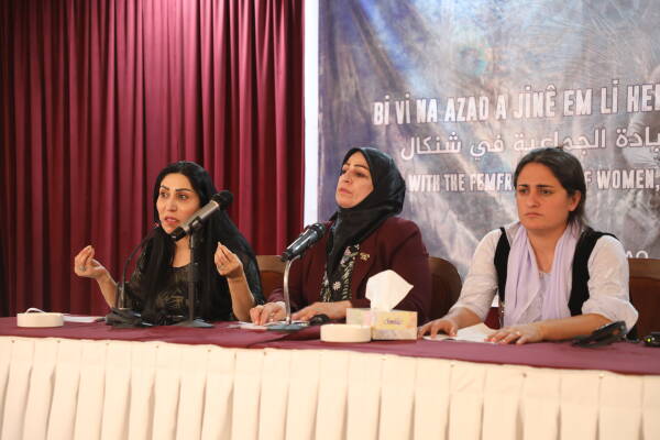لیلا قاسم یکی از اعضای دفتر هماهنگی جنبش آزادی زنان مقالهای در مورد وضعیت کنونی شنگال در میان درگیریها، مشکلات و توطئهها، چگونگی مواجهه زنان با توطئهها و تبدیل شدن به دژ مقاومت و سپر دفاع از شنگال در برابر حملات ارائه کرد. وی همچنین ادامه داد: همهی عکسها و وقایع باید بازنویسی شود، تبدیل به رمان شده و در حافظهی تاریخ باقی بماند. همه باید موضع بگیریم و سکوت نکنیم تا زمانی که خلق کورد و سایر ملل با نسلکشی دیگری روبهرو نمانند.
