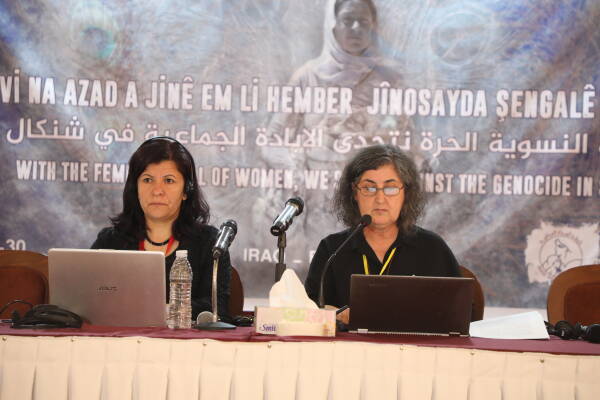 ماریون بوکر، عضو شورای زنان آلمان (DFR)، نایب رئیس اتحادیهی بینالمللی زنان (IAW) و کارشناس حقوق بشر، مقالهای را در این پنل ارائه کرد که قتلعام، کشتار و بردگی زنان را مایهی شرمساری برای جهان و سلطهگران دانست. حملات، قتلعام و نقض حقوق زنان در افغانستان و اوکراین هنوز ادامه دارد. این موضوع در سوریه، عراق، افغانستان و جهان نیز صادق است. زنان در حال تبدیل شدن به هدف سیاست جهانی هستند، بنابراین زنان باید متحد و همبسته باشند. ما باید در سازمانها و نهادهای حقوق بشری برای تضمین آیندهی ایزدیها در شنگال، ترویج خوددفاعی و پایان دادن به قتلعام زنان در شنگال و در کل جهان کار کنیم.