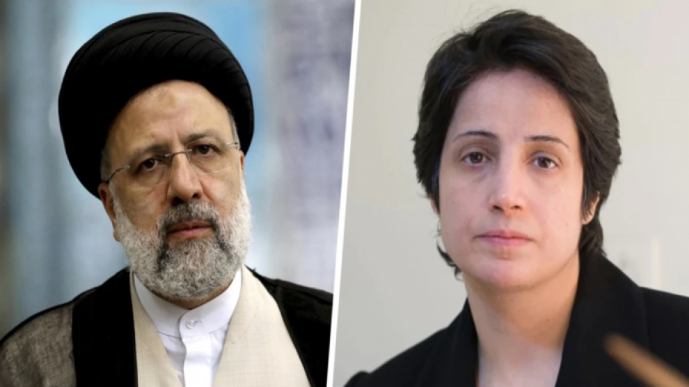 نسرین ستودە و ابراهیم رئیسی، یکی فعال مدافع حقوق بشر و دیگری دیکتاتور سال ٢٠٢١ در یک مجلە