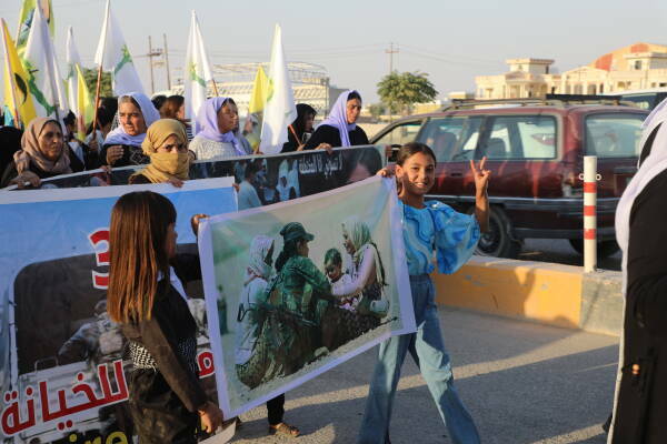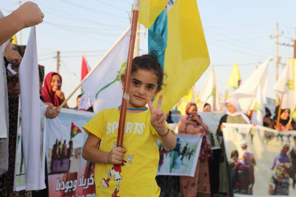 در میان شرکت کنندگان در راهپیمایی، امینه بحری حسن که از جامعه‌ی عرب است در گفت‌وگو با خبرگزاری ما در مورد هدف از حضور در راهپیمایی و حمایت خود از کمپین KJK گفت: ما مخالف هرگونه حمله به زنان هستیم. طالبان نیرویی علیه زنان است. ما به عنوان زنان عرب، نه تنها حمله به زنان عرب، ایزدی یا افغان را نمی‌پذیریم بلکە هیچ حمله‌ای به زنان در سرتاسر جهان را نمی‌پذیریم. ما همه خواهریم، نه من و نه هیچ زن دیگری حمله به زنان را قبول نداریم.
