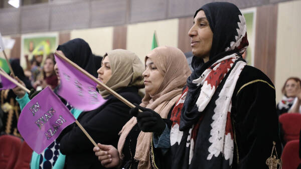 علیرغم سرمای شدید زنان کورد، عرب، ارمنی، ایزدی، سریانی و سایر اتنیکها با لباسهای ملی و رنگی در سالن برگزاری کنگرە حضور یافتند و تصویر بزرگ رهبر خلق کورد عبدالله اوجالان و شعار «ژن ژیان ئازادی» همراە با تصاویر زنان مشاهدە میشد.