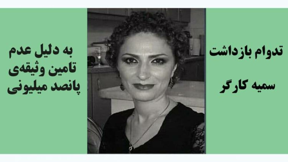 مرکز خبر- به گزارش شبکەی حقوق بشر کوردستان طی روزهای اخیر دادسرای اوین تهران اقدام به صدور قرار وثیقەی ۵٠٠ میلیون تومانی برای آزادی موقت سمیە کارگر، فعال اجتماعی کرده است، خانوادەی ایشان بهدلیل سنگین بودن مبلغ وثیقه تاکنون نتوانستند آنرا تهیە کنند، بههمین دلیل وی کماکان در زندان بەسر میبرد.