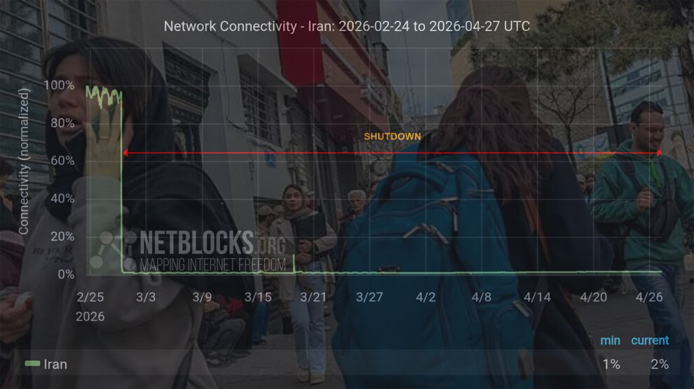 مرکز خبر- وبسایت پایش اینترنت «نتبلاکس» صبح دوشنبه هفتم اردیبهشت گزارش داد که خاموشی و اختلال گسترده اینترنت در ایران پس از ۱۳۹۲ ساعت قطعی یا محدودیت شدید، وارد پنجاهونهمین روز خود شده است. این نهاد بینالمللی تأکید کرده است که این وضعیت، ارتباط ایران با جهان خارج را به شکلی بیسابقه محدود کرده و پیامدهای آن تنها فنی نیست، بلکه به حوزه حقوق بشر نیز گسترش یافته است.