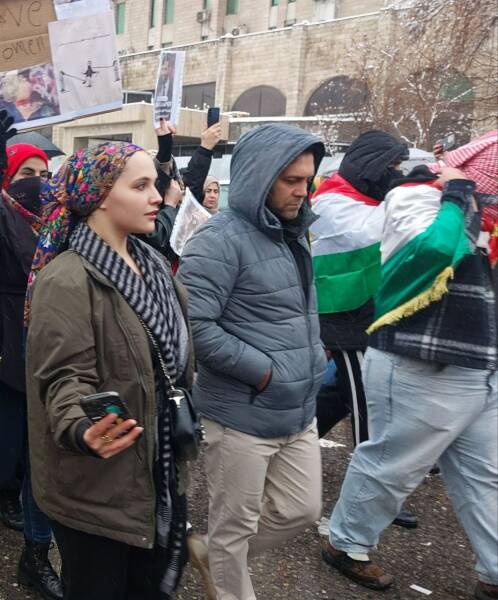 در نقطهای دیگر، زنی با دفنوازی، حلقهای از زنان و مردان را گرد آورده بود. صدای دف با فریاد «ژن، ژیان، آزادی» درهم میآمیخت و شعارهایی چون «تروریست اردوغان» و «تروریست جولانی» فضای خیابان را پر میکرد.