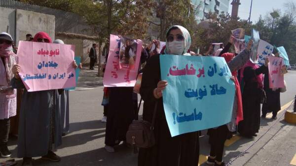 مرکر خبر- امروز پنجشنبه ٧ مهرماه، گروهی از زنان معترض با تجمع مقابل سفارت ایران در کابل پایتخت افغانستان در اعتراض به قوانین زنستیز جمهوری اسلامی بر علیه زنان این کشور، حمایت خود را از اعتراضات سراسری زنان و مردم ایران نشان دادند.