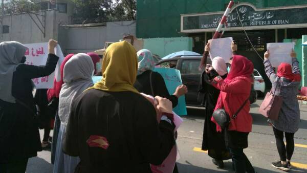 تجمع زنان افغانستان در مقابل سفارت «جمهوری اسلامی» در کابل