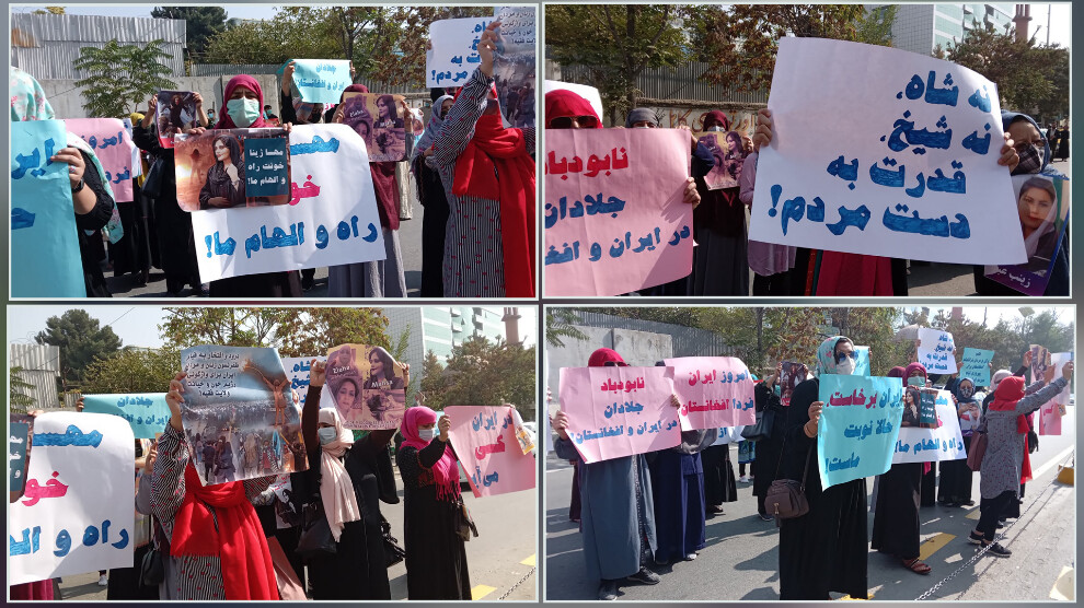 کابل- امروز پنجشنبە ٧ مهر ماە، جمعی از زنان در برابر سفارت جمهوری اسلامی ایران در شهر کابل گردهم آمده و در دادخواهی از خون ژینا امینی و دفاع از خیزشهای کنونی مردم ایران شعار سر دادند.
