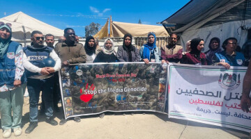 شرکتکنندگان در تجمع اعتراضی که به مناسبت روز جهانی آزادی مطبوعات برگزار شد، خواستار توقف هدف قرار دادن خبرنگاران فلسطینی، تأمین فوری حمایت بینالمللی از آنان و پاسخگویی نیروهای اسرائیلی شدند.