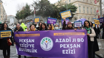 مجلس زنان حزب برابری و دموکراسی خلقها با برگزاری تجمع اعتراضی در استانبول ضمن اعتراض به تأیید حکم اعدام پخشان عزیزی، اعلام کردند که حکم اعدام برای زنان، جنایت علیه بشریت است.