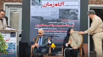 در یک مراسم حکومتی کە بە مناسبت سالگرد مرگ مرتضی مطهری برگزار شدە، از دفنوازی یک زن جلوگیری شد.