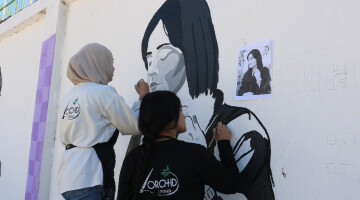 Koma Şopa Orkîd bi Şaredariya Gel ya bajarê Qamişloyê re, bi mebesta 8`ê Adarê Roja Jinên Kedkar ên Cîhanê, ser dîwarên Stadyuma 12’ê Adarê ya bajarê Qamişloyê, bi wêneyên sembola berxwedaniya jinan dike xîz kirin.