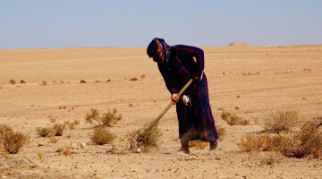 Fitêm Siûd a ji gundê Ebû Fixêz ê Çiyayê Kizwanan li çoleke ku ne mal ne jî mirov û ne lawir lê tên dîtin, bi hevjînê xwe re bivirê xwe girtiye û nêtûnê kom dike.