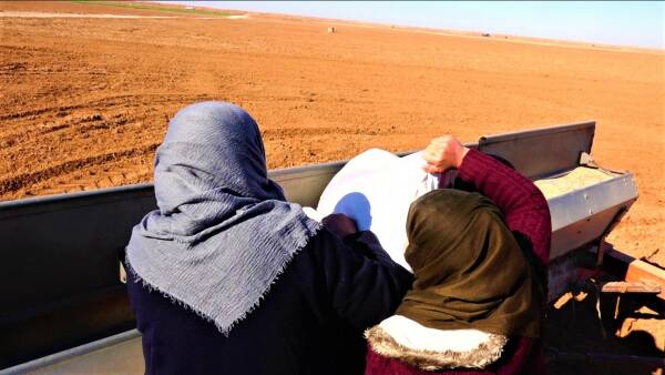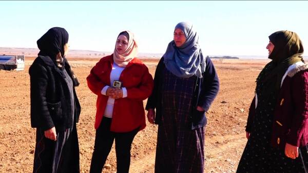 Behiya Ibrahîm a ku ji gundê Qasimiyê a dagirkirî koçber bûye û di Kooperatîfa Çandiniyê de cih digre dibêje: "Li gund min bi tenê erd diçand lê niha em sê jin in, bi nêrînên hevbeş wê çandiniya ceh û genim a îsal serkeftî be."