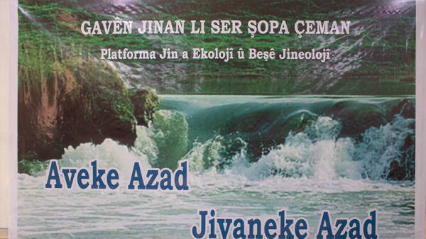 Endama Platforma jin a Ekoliyê Bêrîvan Omer jî li ser mijara ‘Têkiliya jin û avê’ wiha şîrove kir: “Têkiliya jin û avê di xwezayê de pir girîng e. Di dîrokê de dema em mêze dikin dema şaristanî destpêkir, yên îstîxrarar çêkir jin bû. Li tevahî cîhanê em dibînin cihê ku ji bo mirov bijîn hatiye hilbijartin li ber çemê ye û van cihan jî jin hilbijartiye. Mezopotamya mirovahiyê nîşan dide, lewma dîroka jin û avê bi hev re dest pê dike. Çemên heyî jî dîrok û mîtolojiya wê heye. Jiyan bi avê dest pê kir ji ber zindî hemû bi avê re dijî. Jin di destpêka jiyanê de ye, lewma jin dişibe avê, çawa dişibe? Av zelal e, xwe digohêre, nû dike, cihê ku derbas dibe jiyan diafirîne, çandinî dike û lawir xwedî dike. Cihê ku dayik hebe herkes derdor komdibe, cihê av hebe civak kom dibe. Her çemek bi navê xwedavendekî ye ku dîroka her çemekî heye. Îro em dibînin li ser axa me çem tên sekinandin ku weke çemê xabûrê, çem hate kuştin. Divê em li ser van niqaş bikin ku çawa em cardin zindî bikin û bidin jiyîn. Dema çem di destê jinê de bû her diherikî, piştî derbasî destê desthilatdarî bû, çem hemû zûha bû. Heta em xwe dighênin avê, em pir zehmetî dijîn. Bi pirsgirêka avê pirsgirêkên hawirdorê derdikeve.”