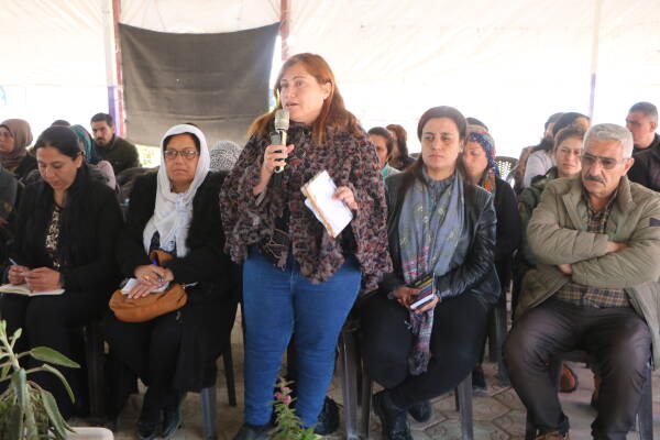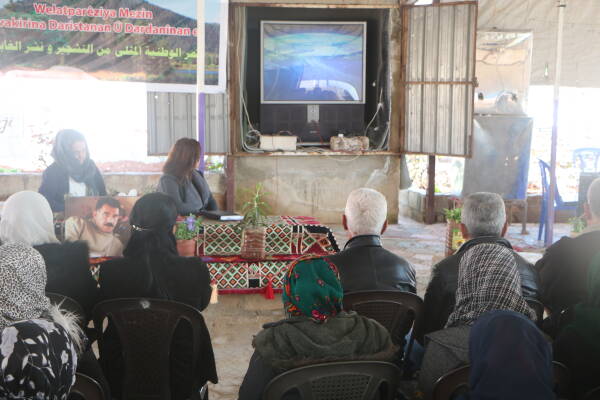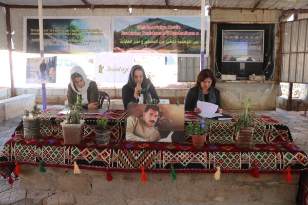 Navenda Jineolojî bi alîkariya Kongra Star û komîteya ekolojîk û şaredariyan a kantonên Efrîn-Şehbayê komcivînek bi diyalog ji endamên saziyan re der barê parastina ekolojîk de li dar xist.