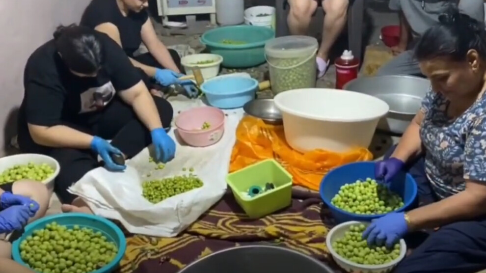 Basîme Îsa Kerîm havala Rêzanê ye û alîkariya amadekirina zeytûnan dike ,wiha dibêje: “Em bi kevir zeytûnan dişkînin û dixin nava avê, piştre ava wê diguherînin, piştre jî dixin nava xwê. Zeytûn ji bo gelek nexweşiyan derman e. Xwarineke xwezayî û bi tendurist e. Rêzan gelek zeytûnan amade dike û em jî alîkariya wê dikin bi hev re em hem dixebitin hem jî demek xweş derbas dikin.”