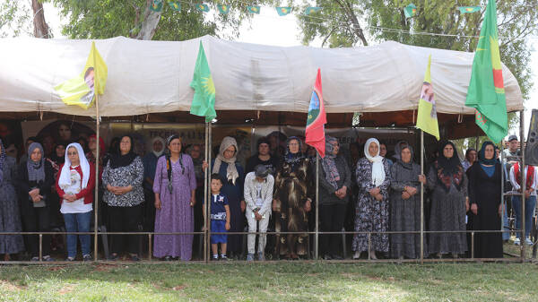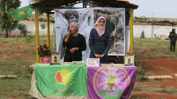 Piştî yek deqe rêzgirtinê endama meclisa Partiya Yekîtiya Demokratîk (PYD) Efrîn-Şehba Hêvîn Reşîd ve derbarê jin û siyaset, malbata demokratîk semîner hat dayîn û beşdarvan tevlî nîqaşan bû.