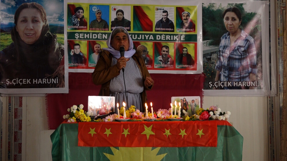 Şengal - Li Navçeya Tilizêr a girêdayî Şengalê ji bo bîranîna Çîçek Harûnî û 10 hevalên wê yên di êrîşên hovane yên dewleta Tirk de li Rojavayê Kurdistanê jiyana xwe ji dest dan, merasîmek hate lidarxistin. Li ser navê Saziya Malbatên Şehîdan, Meclisa Xweseriya Demokratîk a Şengalê (MXDŞ) û Tevgera Azadiya Jinên Êzidî (TAJÊ) Axaftin hatin kirin û soza şopandina riya şehîdan hat dayîn.