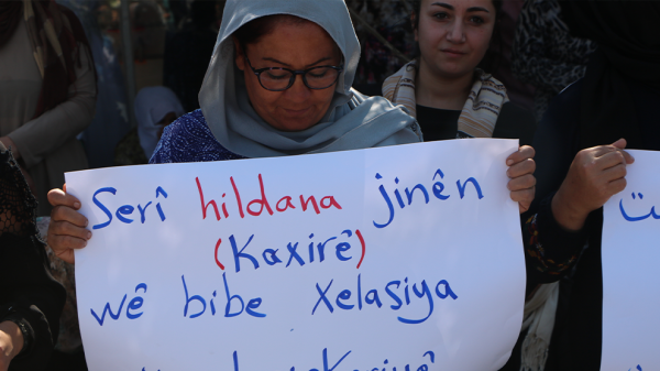 Çalakî li çerxeriya navçeya Ehdasa Şehbayê bi beşdariya welatiyên Kaxirê, endamên sazî û meclisên li herêmê hat lidarxistin. Di çalakiyê de pankertên bi nivîsên "Jin Jiyan Azadî","Serhildana jinên Kaxirê wê bibe xelasiya dagirkeriyê","Bijî berxwedana jinên Kurd" hildan.