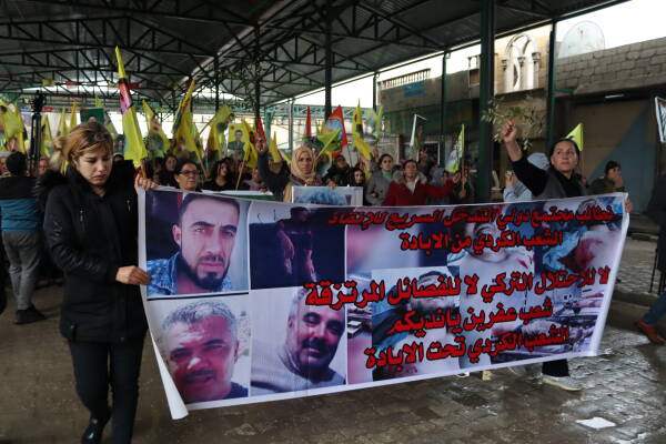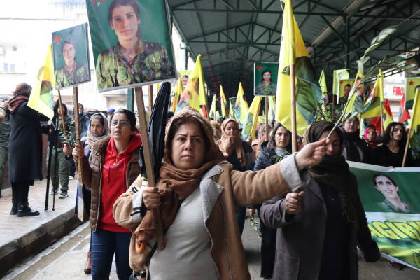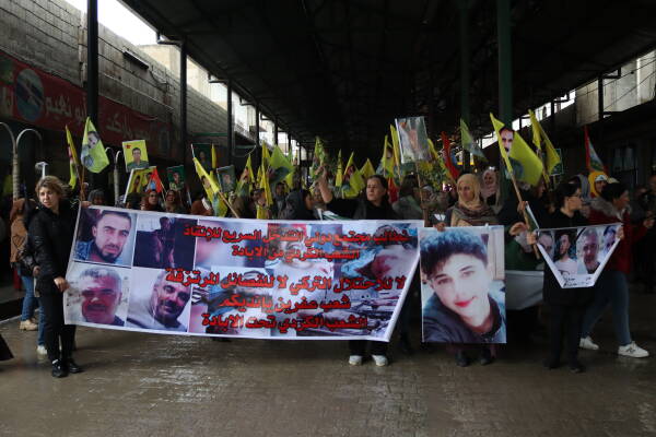 Gelê Kobanê di salvegera 6’emîn dagirkirina Efrînê meşiyan. Jinên di meşê de diyarkirin ku ewê ji bo rizgarkirina Efrînê her di nava têkoşînê de bin.