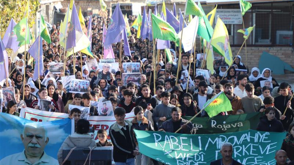 Daxuyanî bi dirûşmeyên ‘Bijî Berxwedana Rojava’ û ‘Ey Şehîd Xwîna te li Erdê Na Mîne’ dawî bû.