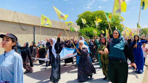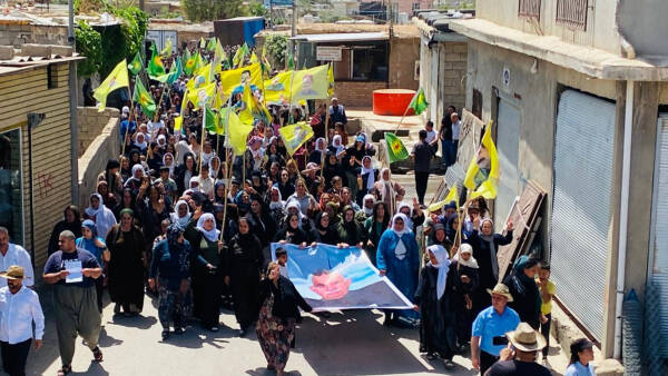 Şêniyên Mexmûrê li dijî girtina şandeya Mexmûrê meşiyan