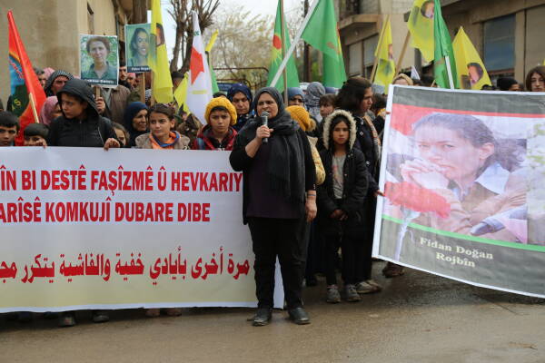 Bi dehan ji şêniyên navçeya Şêranê ya kantona Kobanê bi meşê duyemîn komkujiya Parîsê şermezar kirin. Jinên di nava meşê de helwesta xwe anîn ziman û banga darizandina kujeran kirin.