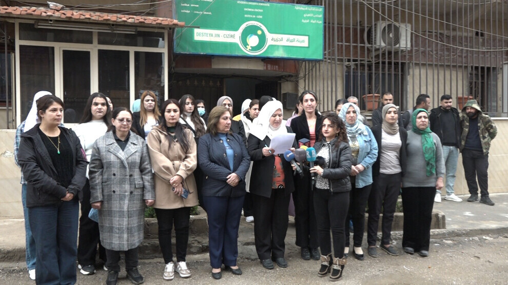 Qamişlo – Daxuyanî li pêşiya avahiya desteyê ya li bajarê Qamişloyê bi amadebûna endamên Desteya Jinan, nûnerên Navenda Lêkolînên Parastina Mafên Jinan, Komeleya Mafên Mirovan, Rêxistina Strêk a Zarokan, Desteya Hundirîn, Meclisa Edaleta Civakî ya Jinan, Weqfa Jinên Azad û saziyên sivîl hat dayîn.