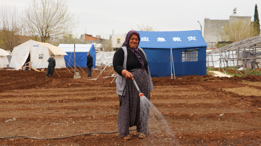 Fatma Ekmen a ku di erdhejê de mala wê hilweşiya li kêlaka kona ku lê dimîne zevî cot kir, dest bi çandina titûnê kir. Fatma Ekmen wiha got: "Ji bilî xebatê tu çareya me nîn e.”