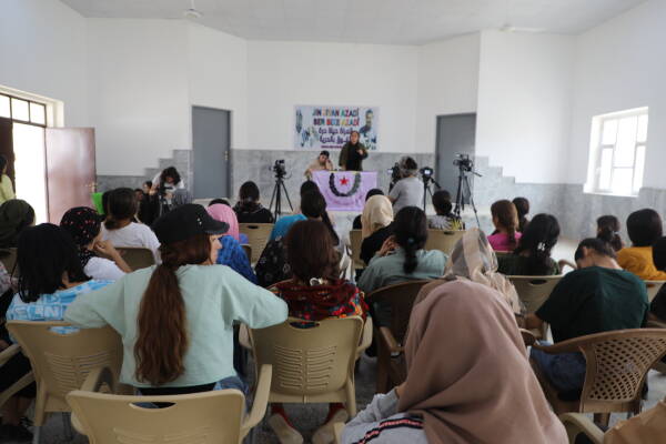 Yekitiya Jinên Ciwan a Şengalê di bin dirûşma “Jin Jiyan Azadî Serbixwe azadî” de li Medreseya Sor a ku bi hezaran jinên Êzidî di fermana 74’ an lê dîl hatibun girtin, semînerek dan.