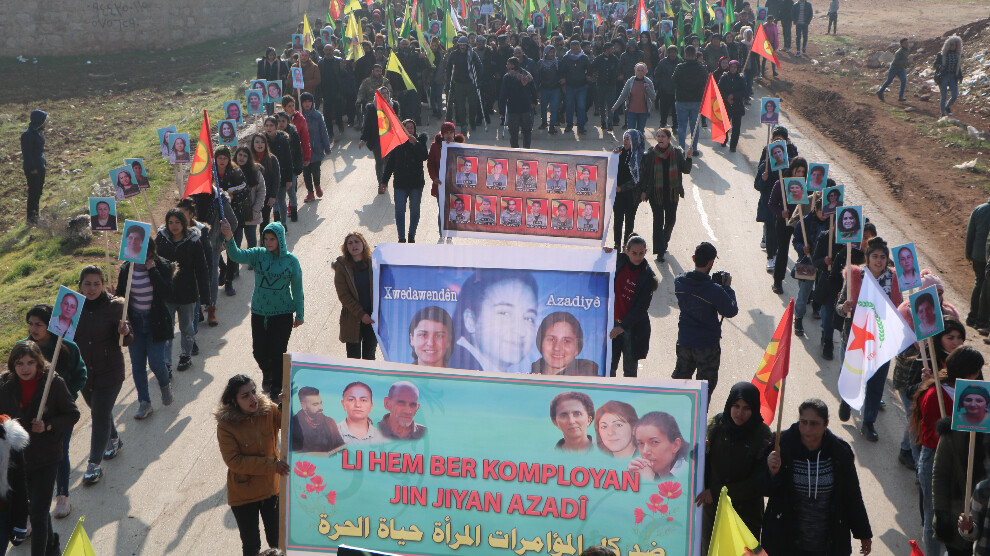 Navenda Nûçeyan – Bi boneya 10’emîn salvegera Komkujiya Parîsê li seranserê heremên Bakur û Rojhilatê Sûriyeyê çalakî û meş hatin lidarxistin, pêşengên têkoşîna azadiya jinê Sakîne Cansiz, Fîdan Dogan û Leyla Şaylemez hatin bibîr anîn. Di çalakiyan de hat destnîşankirin ku kiryarên komkujiyan de diyar e û banga hat kirin dewleta Fransayê ji bo darizandina berpirsiyaran bi erkê xwe rabe.
