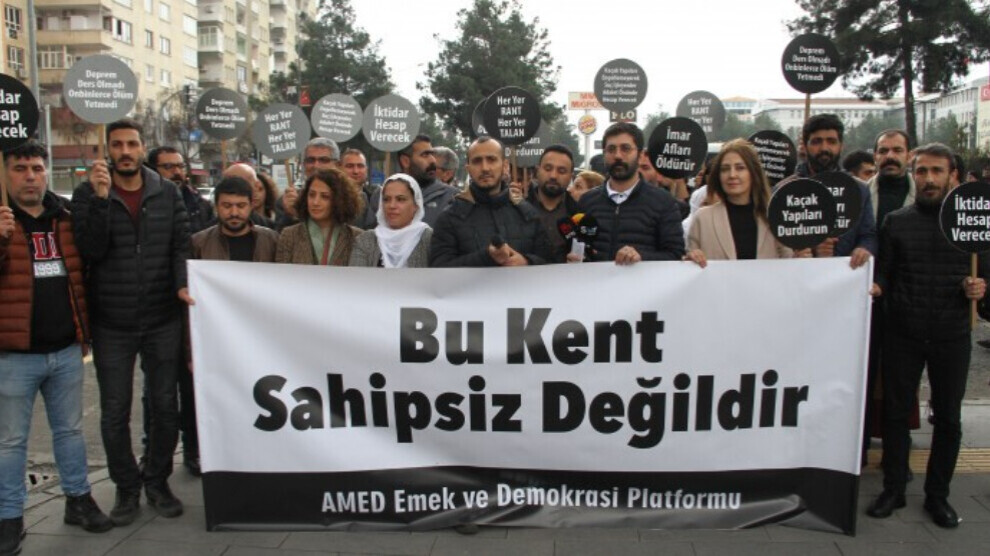Amed- Daxuyaniya ku Platforma Ked û Demokrasiyê ya Amedê xwest li ber Şaredariya Bajarê Mezin a Amedê têkildarî avahiyên qaçax bide, hat astengkirin. Li ber şaredariyê polîsên hezên çevîk û wesayîdên binçavkirinê hatin bicihkirin, piştî hevdîtina ku hat kirin daxuyanî li kolana li kêleka şaredariyê hat dayîn. Di daxuyaniyê de pankarta “Ev bajar bêxwedî nîn e” hat vekirin. Li ser navê Platforma Ked û Demokrasiyê ya Amedê Hevserokê Odeya Avahîsazan a Şaxa Amedê Ferît Kahraman daxuyanî xwend.