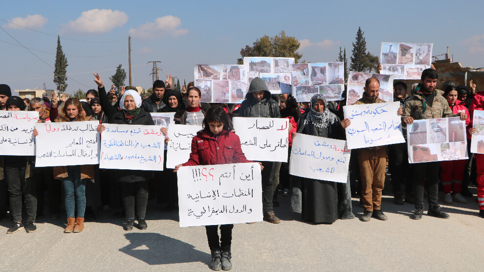 Gelê Şehba û Efrîniyên ku ji ber êrîşên dagirkeriyê yên dewleta Tirk koçberî Şehbayê bûne li dijî dorpêç û ambargoya ji aliyê hikumeta Şamê ve tê meşandin meşiyan.