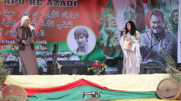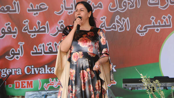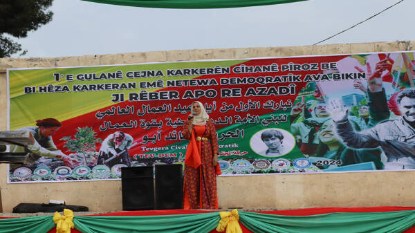 Piştî deqeyek rêzgirtin Hevseroka Tevgera Civaka Demokratîk Tev-Dem Rûken Ehmed axivî û wiha got: "Rêber Ocalan ji bo ku karker bighêjin mafê xwe gelek têkoşiya û hîn jî têdikoşe, 51 sal pey xwe hişt û niha jî komploya li dijî wî tê meşandin, di sala 25'an de ye. Ji bo hemû gel, netew û jinan têkoşîneke bê hempa tê meşandin.