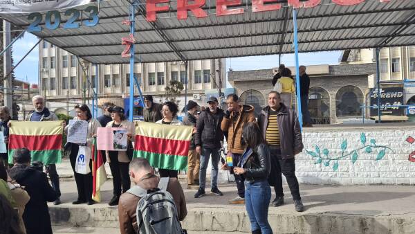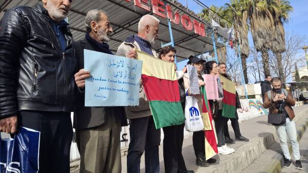 Aktîvîst Enas Na'im got ku beşdaran ji bo piştgiriya Kurdan û balkişandina ser "êrîşa hovanê" ya li Helebê kom bûne û diyar kir ku dîmenên koçberiyê yên dawî bi êş in û koçberiya bi darê zorê û êşa ku gelê Suweydayê berê jiyankir bibîrdixe. Enas Na'im, balkişand ser rewşa jin û zarokan û destnîşan kir hevgirtina di têkoşîna ji bo mafan de wê bidome.