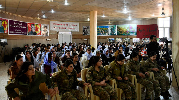 Yekemîn konferansa Yekitiya Jinên Ciwan a Şengalê bi dirûşma “Bi jin jiyan azadî em ê axa xwe biparêzin, Rêber Apo azad bikin” bi beşdarbûna 70 delegeyan li Xanesora Şengalê dest pê kir