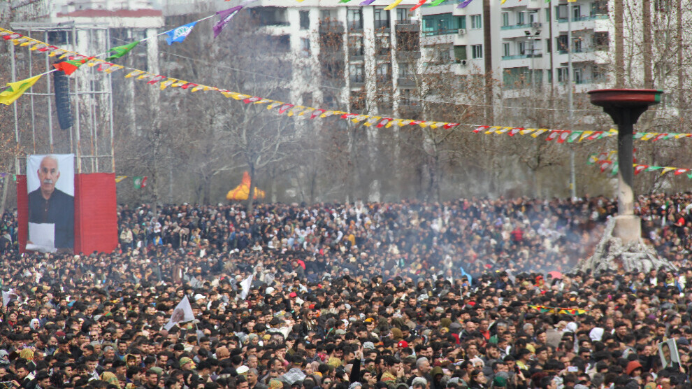 Herî dawî disa li heman qadê, di pêvajoyek ku derbarê aştiyê de hêvî şîn bûne de, coşa ku di xwendina peyama ku li qada germ a Newrozê de hatî avakirin hê di bîran de ye. Ew nameya ku di sala 2013’an de ji aliyê Pervîn Buldan û Sirri Sureyya Onder ve hatî xwendin, vê carê Veysî Aktaş ku li gel Abdullah Ocalan maye û Medya Aslan ku bi salan girtî mayî xwend. Nebûna Sirri Sureyya her kêlî dihat hîskirin. Di pêşandana sînevîzyona der barê wî de hatî amadekirin, kêliyên hestiyar hate jiyîn.