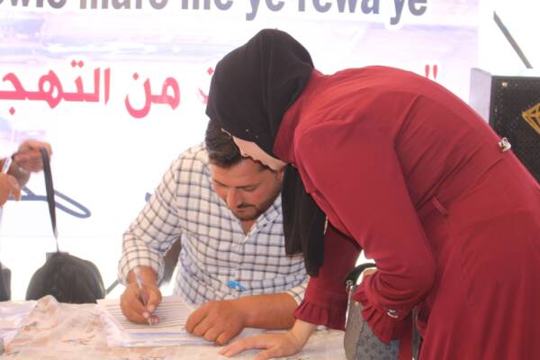 Piştî axaftinan, koçberên li her du kampan ji bo vegera bi ewle piştgirî dan kampanyaya îmzeyan.