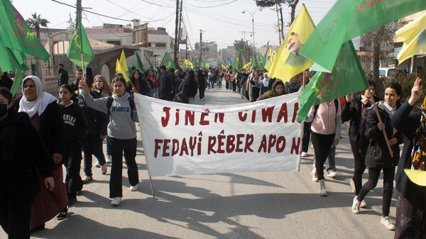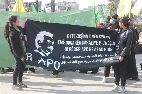 Li bajarê Qamişloya Bakur û Rojhilatê Sûriyê, jinên ciwan li dijî komploya navnetewî ya ku li ser Rêberê Gelê kurd Abdullah Ocalan hat meşandin, meşek girseyî lidar xistin.