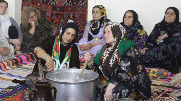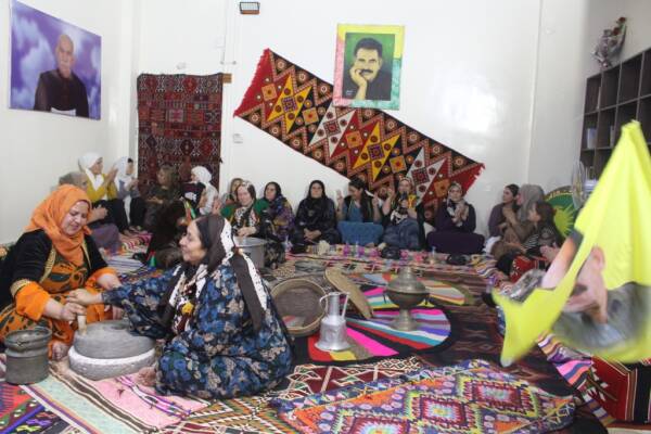 Navend bi wêneyên Rêberê Gelê Kurd Abdullah Ocalan, destarên dîrokî û filklorî, û xwarinên kevneşopî yên wekî Meyir û Teşî hatibû xemilandin. Jinan ev amûr bi stranên dengbêjî û filklorî re bi kar anîn.