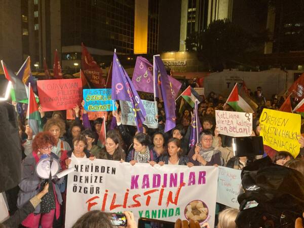 Navenda Nûçeyan - Li ser banga Jin bi hev re bihêz in gelek jin ji bo şermezarkirina êrîşên Îsraîlê yên li ser Filistînê li ber avahiya Serkonsolosxaneya Îsraîlê ya li Beşîktaşa Stenbolê meşiyan. Jinên li Metrocity hatin cem hev û ber bi pêşiya Serkonsolosxaneya Îsraîlê ya li rawestgeha Levent Plazalar demeke dirêj meşiyan.