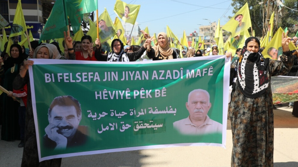 Hesekê – Bi pêşengtiya Kongra Star a Kantona Hesekê û di bin dirûşmeya “Jin Jiyan Azadî wê mafê hêviyê pêk bê “ meşek girsayî hat lidarxistin. Bi sedan jin ji Hesekê, Til Temir, Dirbêsiyê, Zurgan, kampa Serêkaniyê û Kampa Waşokanî beşdarî meşê bûn û banga pêkanîna mafê hêviyê ji bo Rêberê Gelê Kurd Abdulah Ocalan kirin.