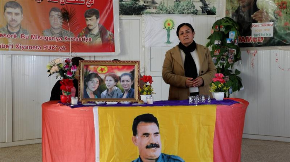 Jinên Êzidî sê pêşengên têkoşîna azadiyê Sakîne Cansiz, Leyla dogan û Fîdan Şaylemez bibîr anîn.