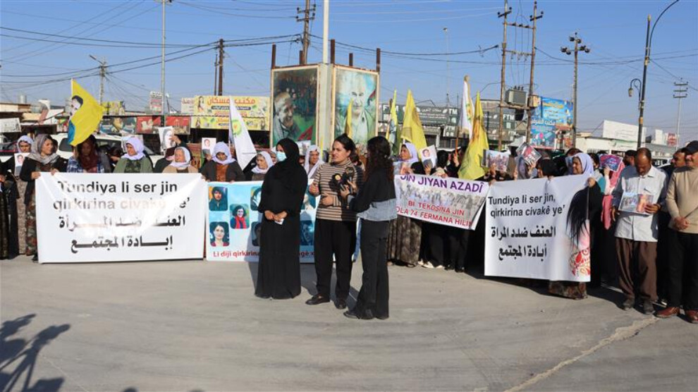 Bi wesileya 25’ê Mijdarê roja têkoşîna li dijî tundiyê ya navnetewî jinên Şengalê bi pêşengiya Tevgera Azadiya Jinên Êzidî (TAJÊ) meşiyan.
