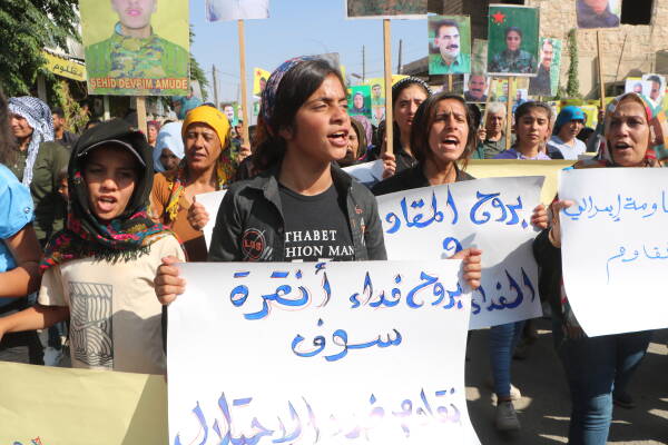 Şehba- Dewleta Tirk û çeteyên wî bi balafirên şer seranserî herêmên Bakur û Rojhilatê Sûriyê topbaran dike û binesaziyan dike armanc. Li dijî van êrîşan gelê Efrîn û Şehbayê meşek li kantona Şehbayê Bakur û Rojhilatê Sûriyê lidarxistin. Meş bi hildana wêneyên pakrewanan û pankertên bi nivîsên "Bimire Îxanet”, "Bi rihê berxwedanê em ê li berxwe bidin" herikîn qada çalakiyê. Jinên ku beşdarî çalakiyê bûn  nêrîn û bertekên xwe li dijî êrîşan anîn ziman.