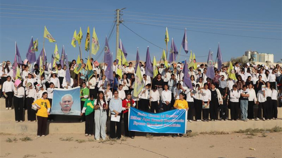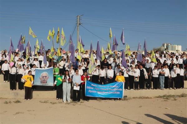 Mexmûr – Di bin pêşengtiya Tevgera Jinên Ciwan a wargeha penaberan a Şehîd Rustem Cudî (Mexmûr) de, jinên ciwan ji bo azadiya fîzîkî ya Rêberê Gelê Kurd Abdullah Ocalan meşiyan.