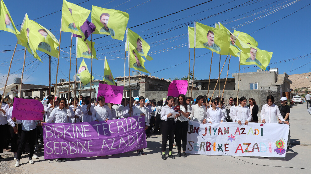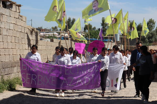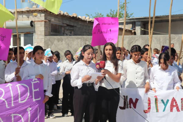 Li wargeha penaberan a Mexmurê dibin kampanyaya ‘Jin Jiyan Azadî, Serbixe Azadî’ de xwandekarên jin ên Mexmurê ji bo tecrîda girankirî ya li ser Rêberê Gelê Kurd Abdullah Ocalan were rakirin meşek girseyî li darxistin û daxuyanî dan.