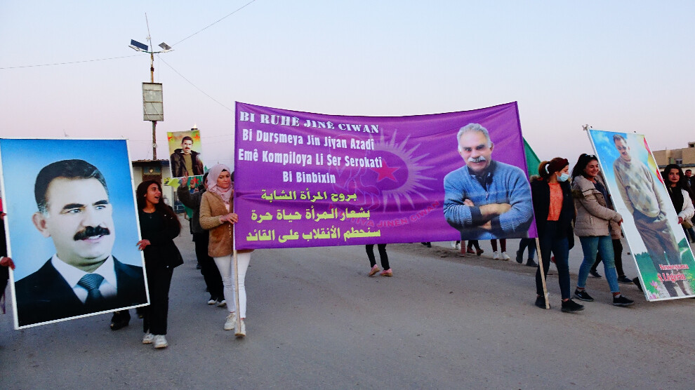 Hesekê- 24 sal in Rêberê Gelê Kurd Abdullah Ocalan, di bin tecrîdê de ye. Bi armanca şermezarkirina komploya navneteweyî li ser Rêberê Gelê Kurd Abdullah Ocalan, di bin dirûşma "Bi rihê jinên ciwan, bi dirûşma Jin Jiyan Azadî em ê komploya li ser serokatiyê têk bibin" Tevgera Jinên Ciwan a navçeya Til Temira Kantona Hesekê ya Bakur û Rojhilatê Sûriyeyê, duh şev meşa bi meşeleyî li dar xist.
