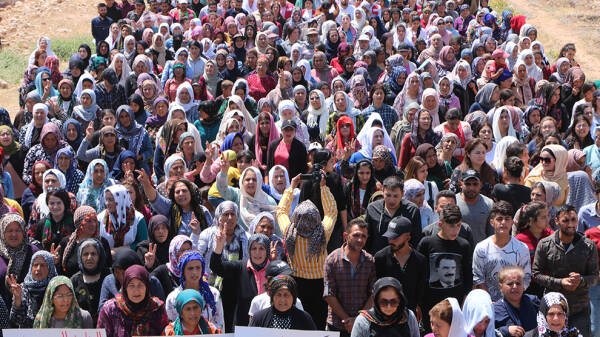 Jinên Efrînî yên di refên pêş ê meşê de cih girtin, li dijî êrişan bertekên xwe anîn ziman.