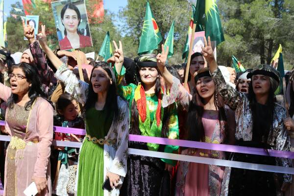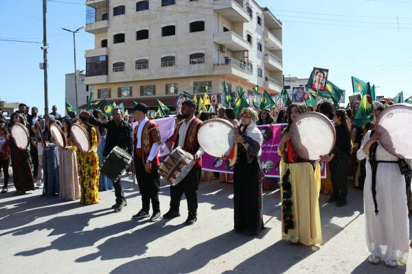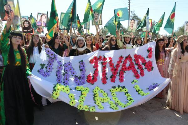 Kobanê- Bi dirûşma “Bi vîna jina azad em ê siyasetên qirkirin, dagirkerî û tecrîdê têk bibin” îro bi boneya 8’ê Adarê Roja Jinan a Cîhanê rêxistina Kongreya Star li gelek deran pîrozbahiyan li dar xist. Bi hezaran jinan bi cil û bergên xwe yên gelêrî û hilgirtina wêneyên jinên têkoşer, posterên Rêberê Gelê Kurd Abdullah Ocalan, pankartên bi nivîsên “Jin, jiyan, azadî” hilgirtin. Jin di destpêkê de li Taxa Nû ya Kobanê kom bûn û bi meşê berê xwe dan qada şahiyê ku pîrozbahiyê ya li Daristana Kobanê.